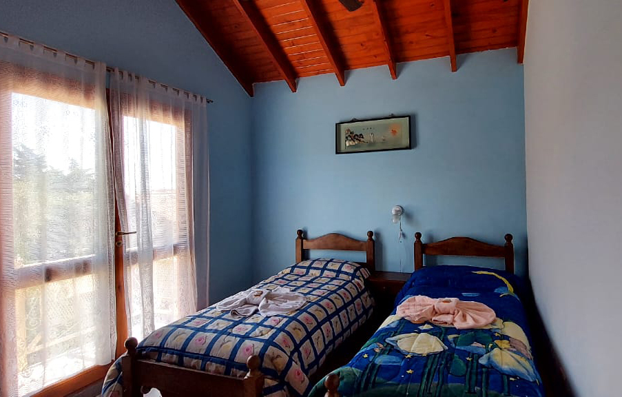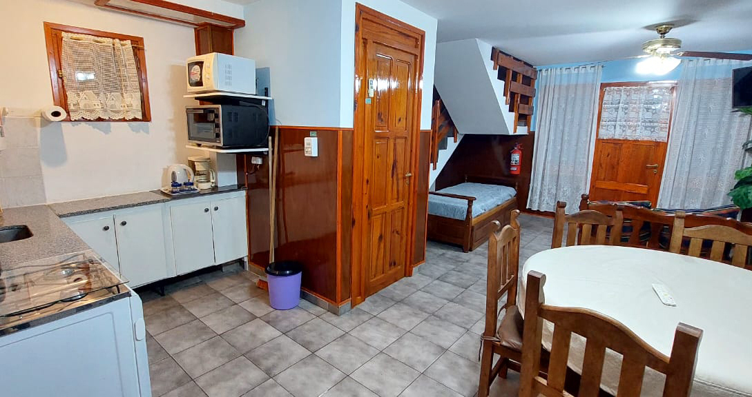 Consta de una superficie total de 90 m2. En la planta baja consta de un amplio living (con dos camas), una cocina totalmente equipada (heladera sin freezer, microondas) living-comedor, un desayunador y un segundo baño o toilette. En planta alta, un dormitorio principal, un segundo dormitorio (con dos camas) y un baño completo con bañera. Cochera cubierta propia con opción a ser utilizada como quincho. Parrilla propia. Equipada para 6 personas. Aire acondicionado frío-calor en living-comedor. Ventiladores de techo y calefacción por estufas de tiro balanceado y/o eléctrica.