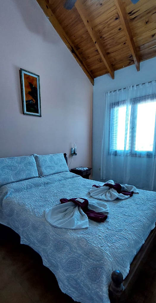 Una superificie total de 72 m² propios. Consta en la planta alta de un dormitorio principal con una terraza balcón con vista a las sierras, un segundo dormitorio (con dos camas) balconeando a la escalera de acceso a la planta alta y un baño completo con bañera. En la planta baja cuenta con un living comedor (con una cama una plaza y otra bajo carrito), una cocina completa y toilette . Cochera semicubierta que se puede usar como galería. Parrilla propia. Equipada para 6 personas. Aire acondicionado frío-calor en living-comedor.