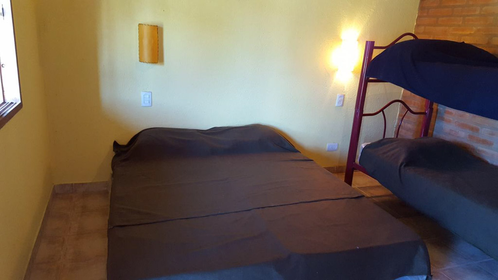 Habitación cuádruple, muy confortable. Puede ser armada con una cama matrimonial y dos camas individuales o combinadas con cuchetas. Capacidad hasta 4 personas.