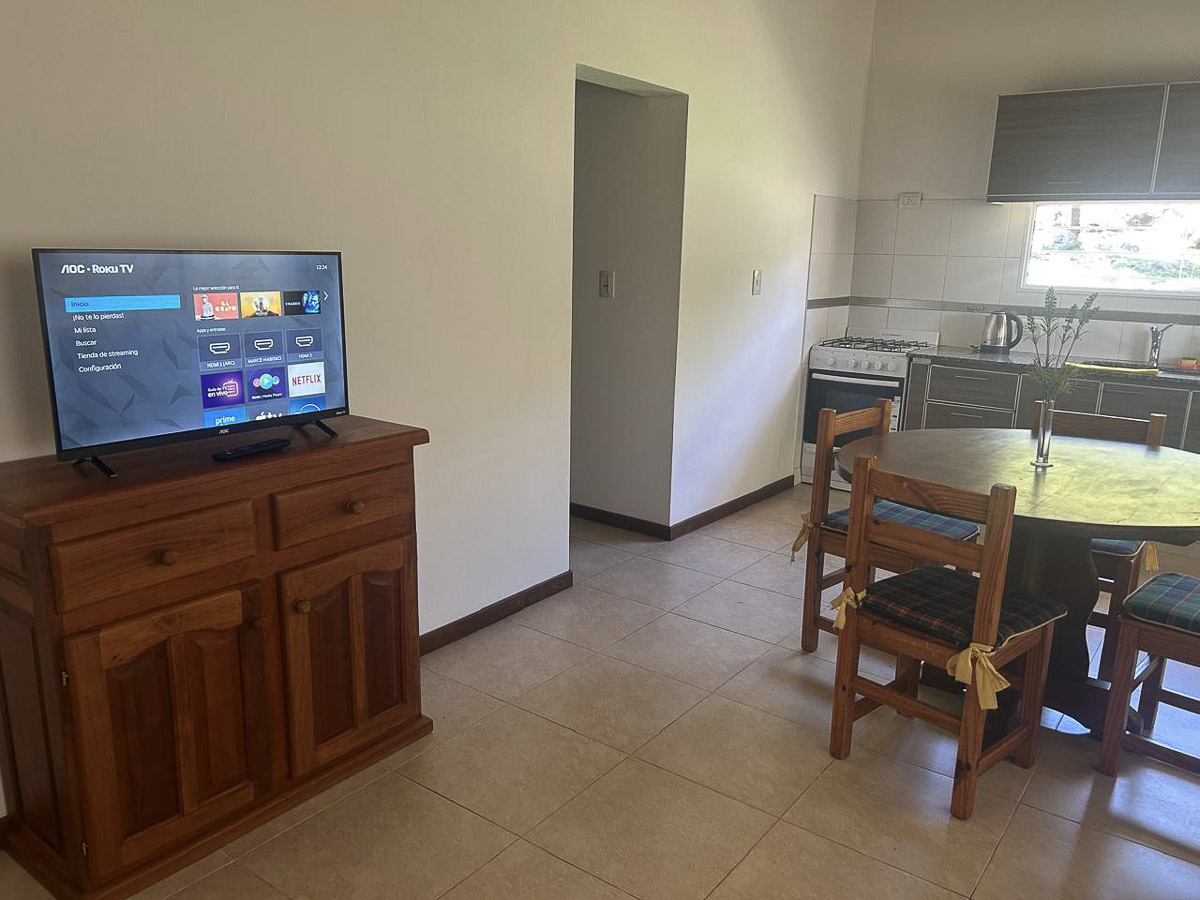 Planta baja: Cocina Living comedor. Artefacto 4 hornallas y horno/ heladera con freezer / tostadora eléctrica/ pava eléctrica/ vajilla completa / TV SMART 32" / Estufa tiro balanceado.